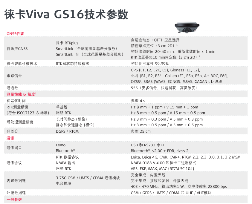 徠卡測量系統(tǒng)重磅推出的Viva GS16 智能GNSS天線是具備自適應能力的測量型GNSS天線產(chǎn)品。 GS16自適應GNSS天線可以自動適應測量作業(yè)環(huán)境變化,根據(jù)天線在作業(yè)環(huán)境中跟蹤到的GNSS衛(wèi)星信號(跟蹤衛(wèi)星/信號質量)變化和RTK改正數(shù)(網(wǎng)絡通訊/電臺通訊)變化, GS16自動選擇衛(wèi)星組合、自動切換Z佳差分改正數(shù)據(jù),保證全地形、全天候、全領域作業(yè)。