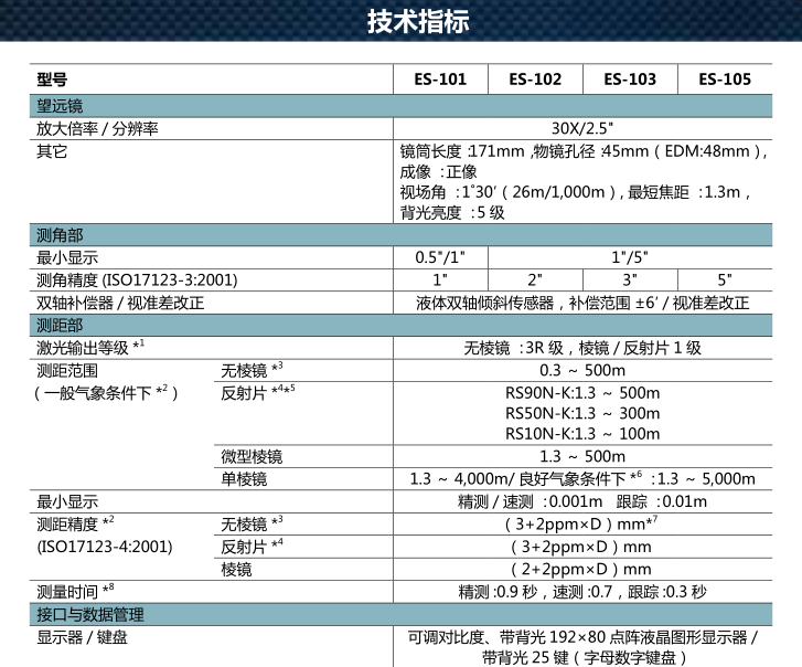 ES是拓普康與索佳兩大品牌強強聯(lián)合后的意義上的“混血兒”全站儀??梢钥吹?,ES采用了索佳的高精度測角技術(shù)IACS,以及相位法的測距技術(shù),這都讓ES作為一款工程型全站儀,達到了1″的精度,并且在測距上做到光斑小,速度快,而省電!同時,星號鍵在測量鍵的合理設(shè)置上,ES又繼承了拓普康一貫的操作簡單,人性化的優(yōu)勢,讓用戶能夠安心,舒心的進行測量作業(yè)!無論是數(shù)據(jù)管理上,無線通訊上,防護等級上,續(xù)航能力上,測量用戶所關(guān)注一臺全站儀該有的功能,該達到的性能,ES都能高度滿足!做到讓用戶輕輕松松做測量。