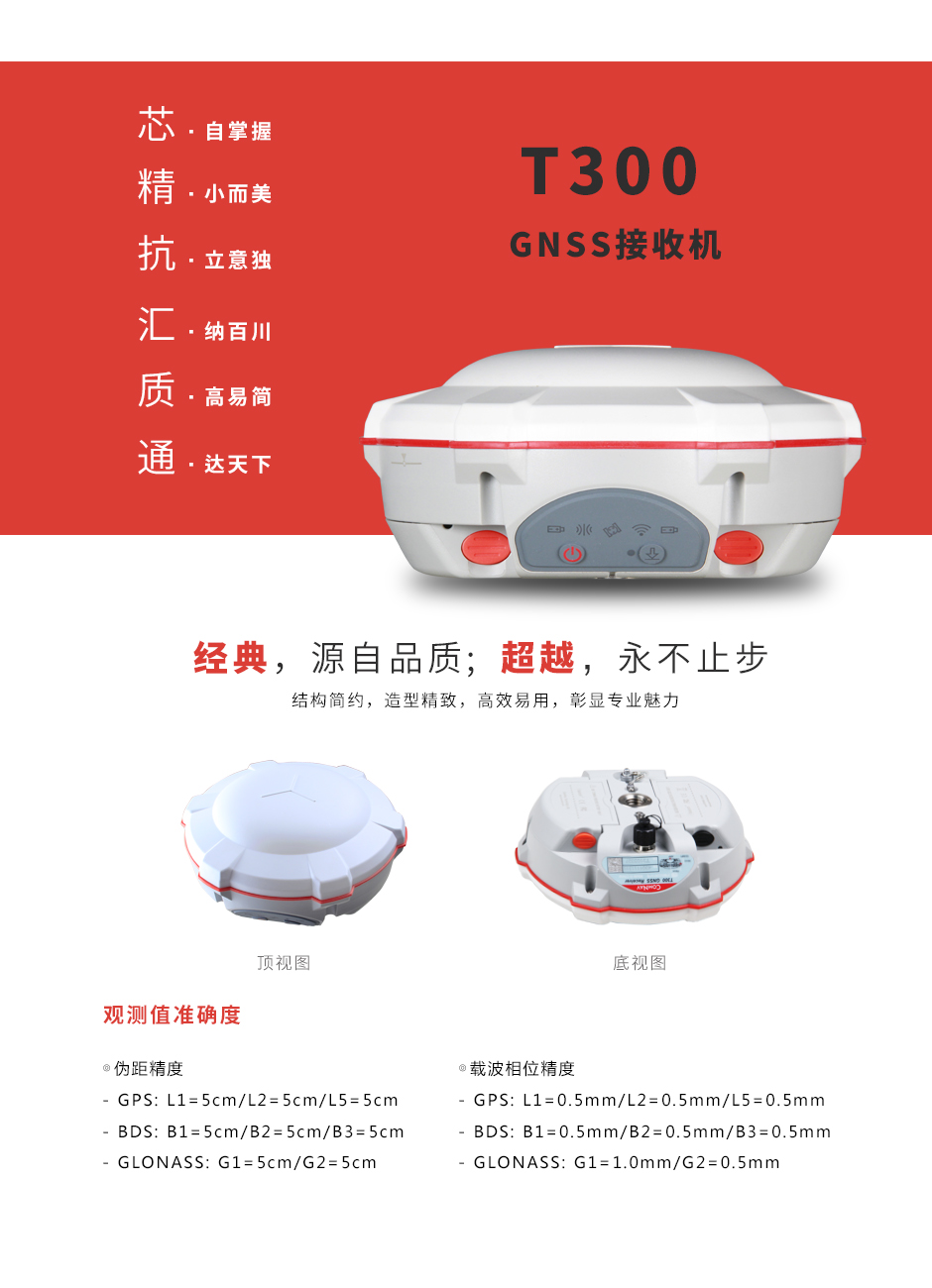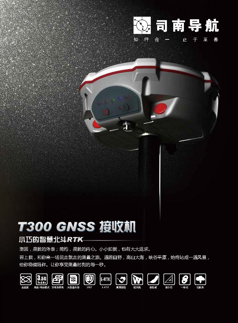 T300 GNSS接收機(jī)采用司南導(dǎo)航多模多頻的RTK算法,目前已支持GPS+BDS+GLONASS三系統(tǒng)八頻點(diǎn)信號(hào),可升級(jí)Galileo信號(hào);集成電臺(tái),GPRS,藍(lán)牙,WIFI,存儲(chǔ)等模塊于一體,使得接收機(jī)結(jié)構(gòu)精致簡(jiǎn)約,小巧輕便,成就目前體積小重量輕的GNSS接收機(jī);智能信號(hào)跟蹤技術(shù)適應(yīng)更加惡劣復(fù)雜多變的使用環(huán)境;兼容國(guó)內(nèi)外主流數(shù)據(jù)報(bào)文、網(wǎng)絡(luò)、電臺(tái)等協(xié)議;雙電池設(shè)計(jì)保證持久續(xù)航;工業(yè)IP67級(jí)防水防塵、堅(jiān)固抗摔。